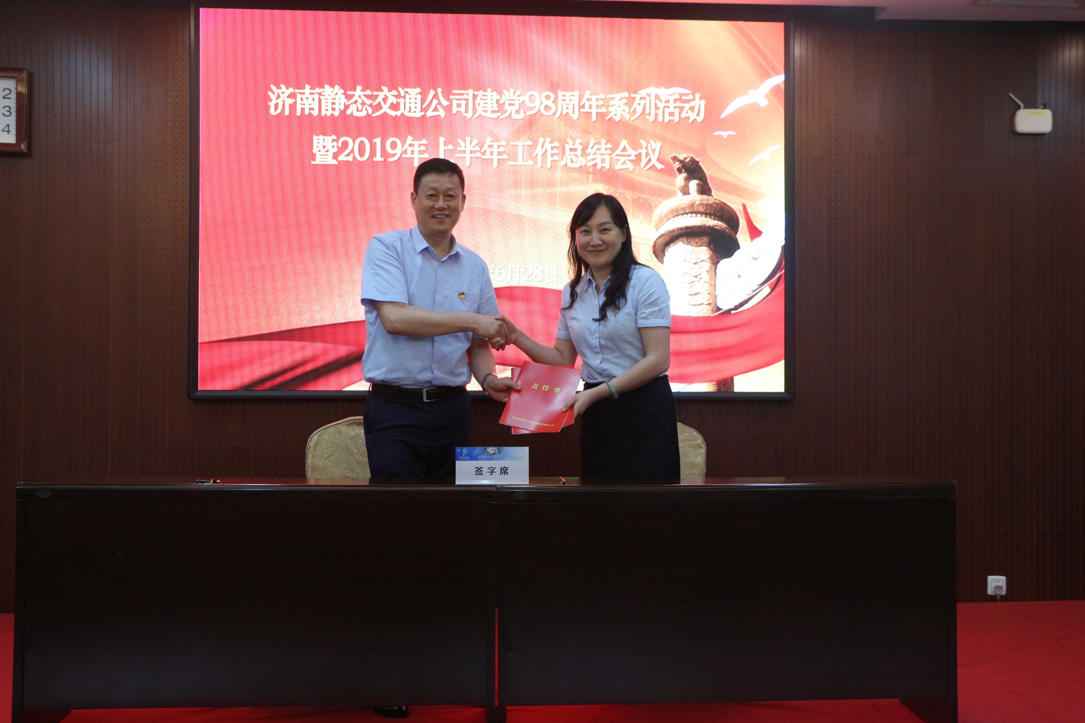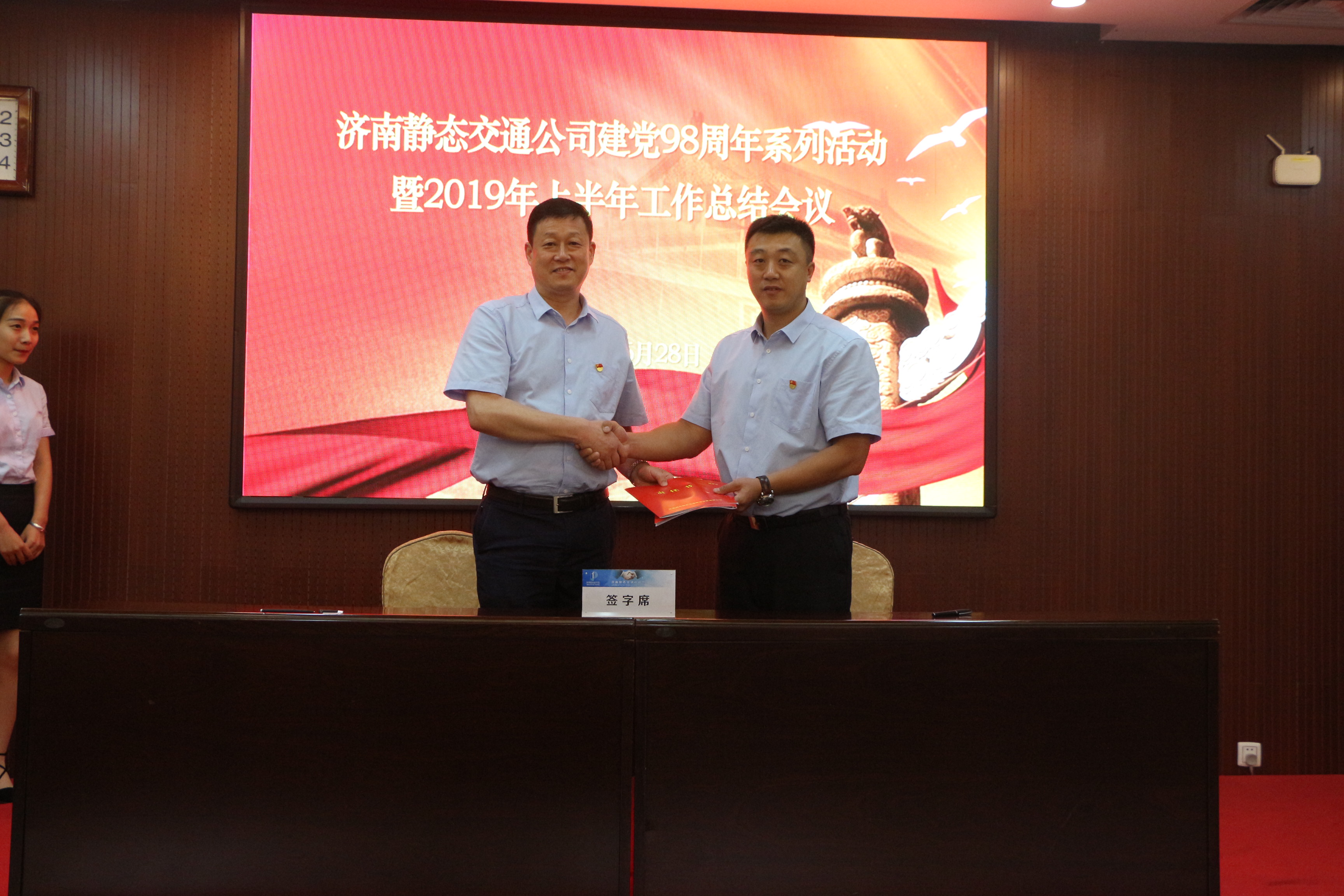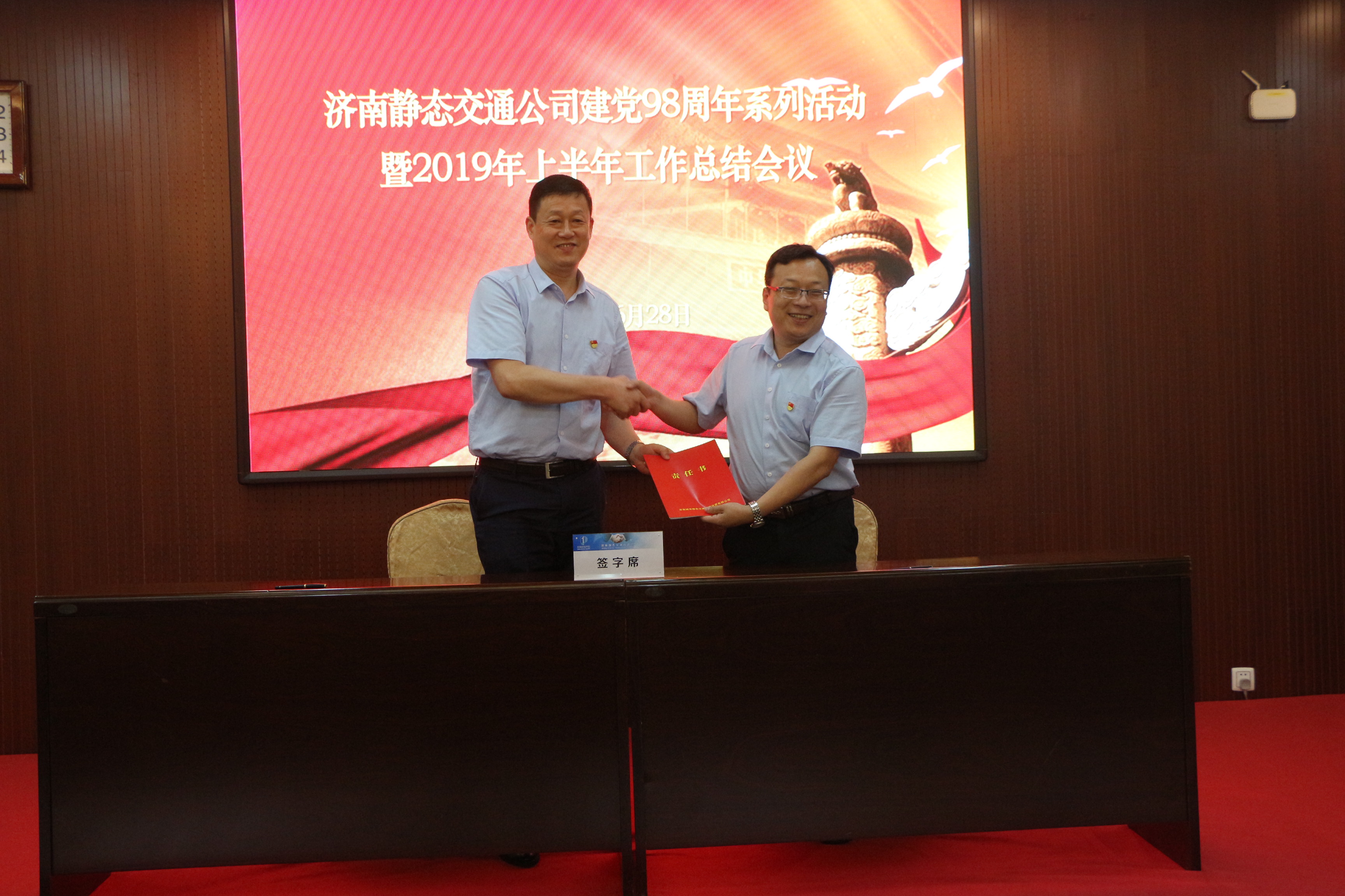 6月30日下午,濟(jì)南靜態(tài)交通集團(tuán)與歷城交警大隊(duì)在“七一”前夕,隆重舉行了“牢記初心使命、共譜警企新篇”黨建共建簽約啟動(dòng)暨共建基地揭牌儀式。此次活動(dòng)是濟(jì)南靜態(tài)交通集團(tuán)與歷城交警大隊(duì)圍繞“立足民生,為群眾解決停車(chē)難、停車(chē)亂問(wèn)題”的目的,創(chuàng)新黨建工作形式和載體的一次全新嘗試,是全面貫徹落實(shí)“不忘初心、牢記使命”主題教育活動(dòng)精神的全新舉措,也是雙方以黨建引領(lǐng)促進(jìn)拓寬交流渠道、深化警企合作,實(shí)現(xiàn)共融、共